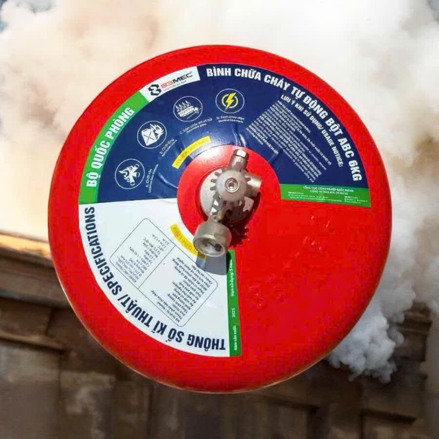 Bình cầu chữa cháy tự động 83Mec bột ABC 6kg là thiết bị phòng cháy chữa cháy dạng treo trần, tự động kích hoạt khi nhiệt độ môi trường đạt ngưỡng quy định. Sản phẩm được sản xuất bởi 83Mec – đơn vị trực thuộc Bộ Quốc Phòng, đạt tiêu chuẩn kiểm định PCCC theo quy định hiện hành.